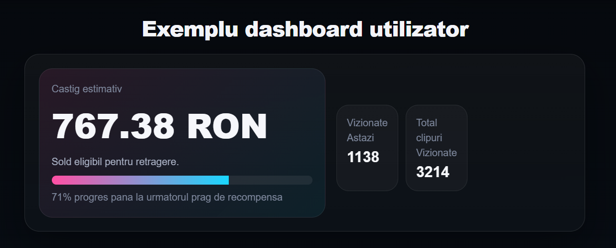 👉 Am primit acces la dashboard-ul de câștiguri