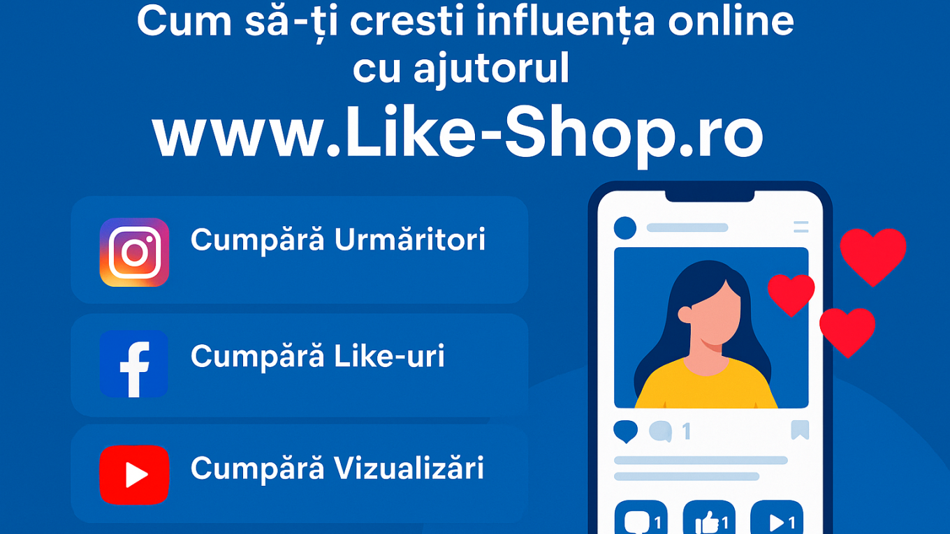 Dacă ești în căutarea unei metode sigure, rapide și eficiente de a-ți crește impactul pe social media, www.Like-Shop.ro este partenerul potrivit. Cu pachete flexibile, servicii de calitate și suport dedicat, platforma îți oferă tot ce ai nevoie pentru a-ți atinge obiectivele digitale.